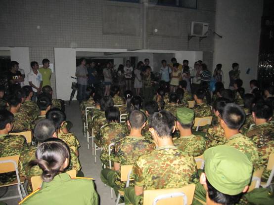 截止至2011年9月1日下午,环境科学与工程学院2011级迎新工作圆满结束,晚七时2011级新生在八九号楼之间集合,开始了他们进入大学后的军训生活。