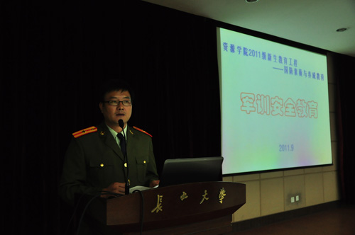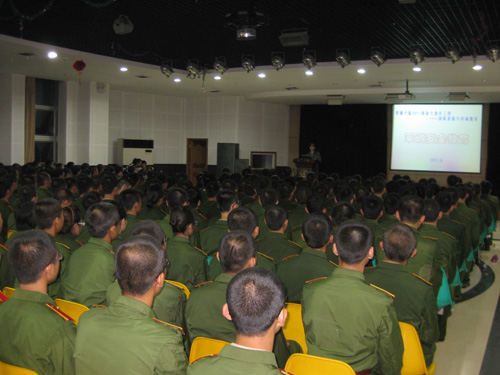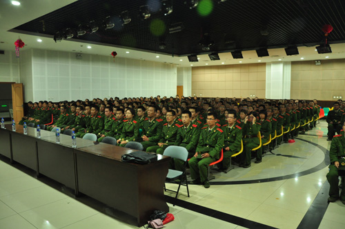 为帮助我院2011级全体新生顺利融入集体,尽快适应大学生活。2011年9月5日,资源学院在朝晖大学生活动中心三楼多功能厅召开新生教育工程之国防素质与养成教育的重要组成部分——2011级新生军训安全教育。我院党委副书记王卫、军训师六团团长杨小光、军训师六团十五、十六连连长、指导员、排长及2011级全体新生参加会议。会议由党委副书记王卫主持。