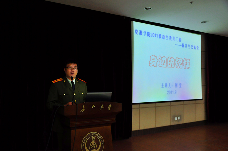 为了帮助我院2011级新生尽快融入大学生活,奋发进取、力争上游,营造“学先进、看典型、正风气”的良好氛围,2011年9月5日晚,资源学院邀请优秀学生荆莹在渭水校区朝晖大学生活动中心三楼多功能厅参加新老生交流会。此次交流会作为我院2011级新生教育工程之奖励与资助教育的重要组成部分,以“身边的榜样”为主题。我院党委副书记王卫、2011级新生辅导员查方勇、李利鸽及2011级全体新生参加了交流会。交流会由学院党委副书记王卫主持。