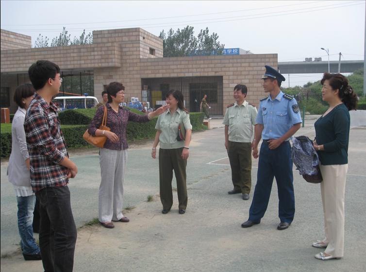 刘书记与教官亲切交谈
