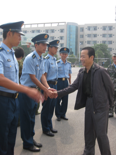 9月9日上午,在中秋节来临之际,资源学院党委书记杜福元、党委副书记王卫、黄喜峰代表学院党政领导,在学工办主任武永江、院办主任刘会涛、院团委副书记、2008级辅导员老师杨利锋等人的陪同下,来到渭水校区东区操场,亲切看望了承训教官及全体新生,并给承训教官送去了慰问品。