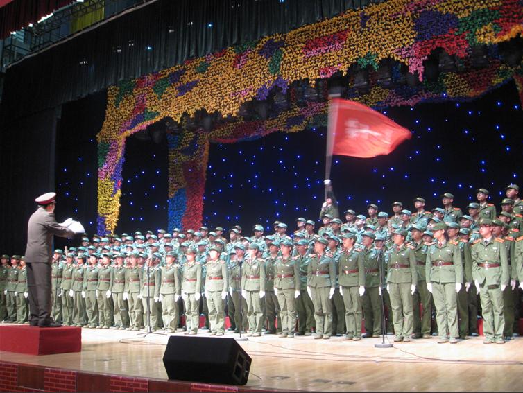晚七时许,比赛正式开始。各个方队依次登台,放飞歌声,使现场洋溢着军人的豪情壮志,虽最后出场,我院代表队毫不示弱,迈着整齐的步伐闪亮登场,他们着装整齐,昂首挺胸,展现出军人斗志昂扬的精神风貌。乐队指挥一声令下,浑厚的歌声便磅礴而出,他们的深情演唱,唱出了军人的风采与士气,唱出了对党和解放军的深情。那昂扬向上的旋律、震人心弦的歌声、整齐划一的动作赢得了台下一阵又一阵的掌声。