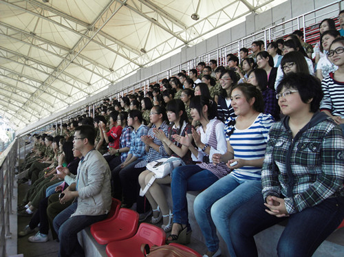 9 月12 日下午3 点,我院"军旅中秋"慰问演出在朝晖运动场举行。10 级辅导员曲建晶老师作为嘉宾出席了本次演出。院团委、学生会全体成员及全体 11 级新生观看了演出。
