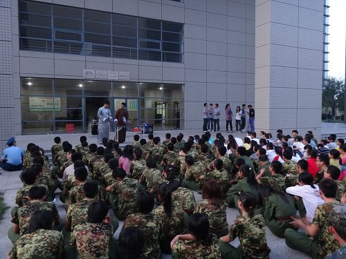 2011年9月12日晚,时值中秋佳节,理学院联合外语学院在明远D栋实验楼前举办了一场新生军训慰问演出,为理学院及外语学院全体新生带来了一场精彩的表演并给大家送上了节日的祝福。