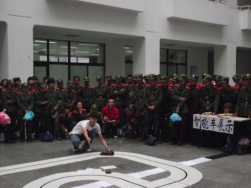 2011年9月17日下午四时,恰逢11级新生军训期间,汽车学院团委科协智能车动感展示活动于修远教学楼二区大厅隆重上映。汽车学院团委副书记易磊、11级辅导员王抢、院科协主席王广库及院科协全体成员、在场数位教官、四百多名军训新生参与了本次活动。