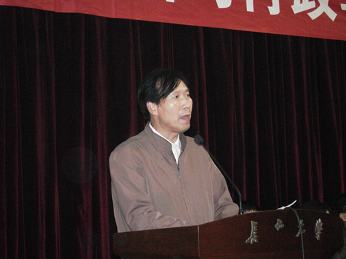 首先,院长刘吉发教授代表学院热烈欢迎全体新生同学的到来。刘院长从学院的发展历程、学科设置、专业结构、师资力量以及人才培养等方面对学院作了全方位地介绍。在谈到学院的发展目标时,刘院长向同学们勾画了学院"一个学院两个中心"的构建思路,力争在"十二五"期间实现我院博士点零的突破!针对大学新生面临 的新环境、新挑战、新问题,刘院长向同学们提出了四点希望:第一,既要胸怀祖国,更要放眼世界,将爱国情怀和国际化视野结合起来;第二,既要勤奋学习,更 要立志成才,把成才奉献作为勤奋学习的内驱动力;第三,既要加强修养,更要健全人格,用健全的人格和全面的素质提升生命品质;第四,要努力创新,突破自我,在学习和工作的道路上不断刷新自己的成绩。