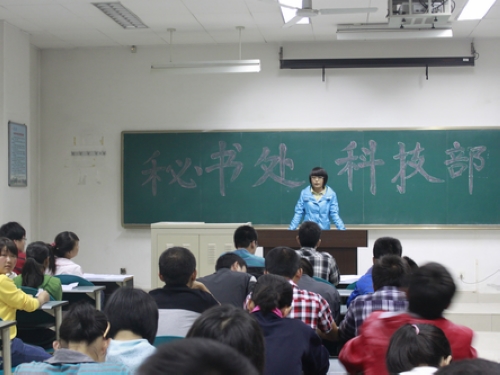 为更好地践行我院学生会全心全意为同学服务的宗旨,给学生会输送一批优秀人才,给新生一个展现自我、完善自我的机会。9月20日晚,我院学生会于明远教室举行了学生会纳新活动。我院10级辅导员冯川川老师、11级辅导员刘珺老师,学生会主席团成员,各部部长、副部长及竞选新生参加了此次活动。
