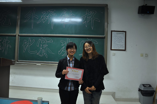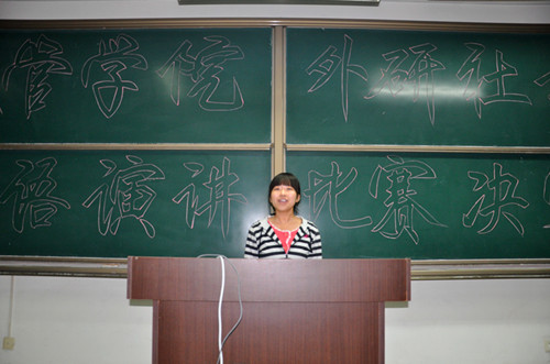 2011年9月28日晚7时,经管学院首届英语演讲比赛于渭水校区明远3401教室举办。外国语学院黄钰杰老师、10年CCTV“外研社杯”长安大学英语演讲比赛一等奖获得者孙馨同学担任本次比赛的评委。
