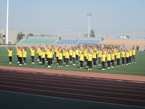 2011年9月29日中午,外国语学院全体大一新生参加了长安大学举行的第九套广播体操比赛并荣获第三名。