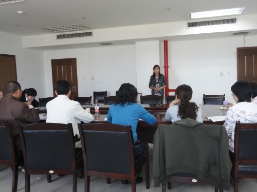 为增进思想交流,丰富大学生活,繁荣校园文化,2011年10月13日下午,我院在行政楼六楼会议室成功举办了“外研社杯”英语演讲比赛初赛。担任此次比赛的评委有我院英语系主任、副主任李微、赵斌,我院任课教师常泳华、赵燕、张秀见。