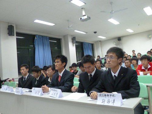 在会议上,首先由主席胡建发言。他介绍我团的发展历史,着重谈了奋斗目标、本学期工作重点和对全体成员的要求。主席发言很有激情,鼓舞大家不懈奋斗,从中我们也看到了他对新生的关爱和期望。随后,常务副主席胡慧娟就团内的规章制度进行发言,强调遵守团规团章的重要性,同时具体讲解了各项制度。正所谓“国有国法,家有家规”,我们大志团就是相亲相爱的一家人。紧接着,团支部书记刘景奎关于内部建设进行发言,生动有趣的话语中体现了他对团内建设的理念和思路。之后,主席胡建给大家播放并讲解了以前所做活动的幻灯片,画面上展示了当代大学生的风采,展示了那些亟待帮助的人群,展示了大家和弱势群体在一起的笑容,几十张幻灯片也正是我们团发展历程的真实写照。从中大家感慨良深,充满了对以后活动的憧憬,我们急切地希望用自己的双手为那些需要帮助的人送去微笑,送去温暖。另外,负责新闻部和宣传部的副秘书长刘仁义、负责外联部和爱心服务部的副主席吕路、负责组织部与社区服务部的副主席田振波、负责绿色环保部和支农支教部的团支部副书记封海洋都就所分管部门以后的工作要求做了意味深长的发言,晓之以理,动之以情。副主席吕路的发言经典而富有激情,获得了大家的阵阵掌声。最后,各部门部长和部员互相交流,部长就以后的工作做了详细的安排,大家谈到生活、工作和学习,有说有笑,气氛十分融洽。