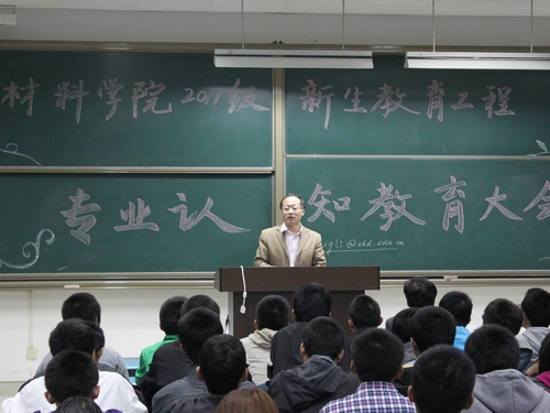 首先,道材系主任李炜光教授向11级新生讲解了道材系的师资力量、实验室条件与环境、科研成果和人才培养等基本情况。之后,他谈到道材系从大学一年级就开始实行班导师制度,希望同学们积极与班导师交流,努力做好从中学生向大学生的转变,认真学好基础课,为专业课的学习打下坚实的基础。同时他鼓励同学们积极参加挑战杯和创新性实验等科技活动,在活动中培养大家对专业的学习兴趣。最后,他希望同学们能够对今后的学习生活充满信心,并期待与大家共同建设一个朝气蓬勃的道材系。
