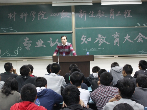 10月16日晚19时,我院道路材料工程系(“以下简称道材系”)在明远3301教室顺利召开了专业认知教育大会。我院党委书记王耀文教授、院长兼道材一班班导师陈拴发教授、道材系主任李炜光教授、副主任陈华鑫教授、道材二班班导师王超凡老师、高分子班班导师许培俊老师,以及我院团委书记何红娟老师、09级辅导员尚秀琳老师、10级辅导员冯川川老师,11级辅导员刘珺老师出席了此次会议,同时与会的还有2011级道材系全体同学。会议由11级辅导员刘珺老师主持。