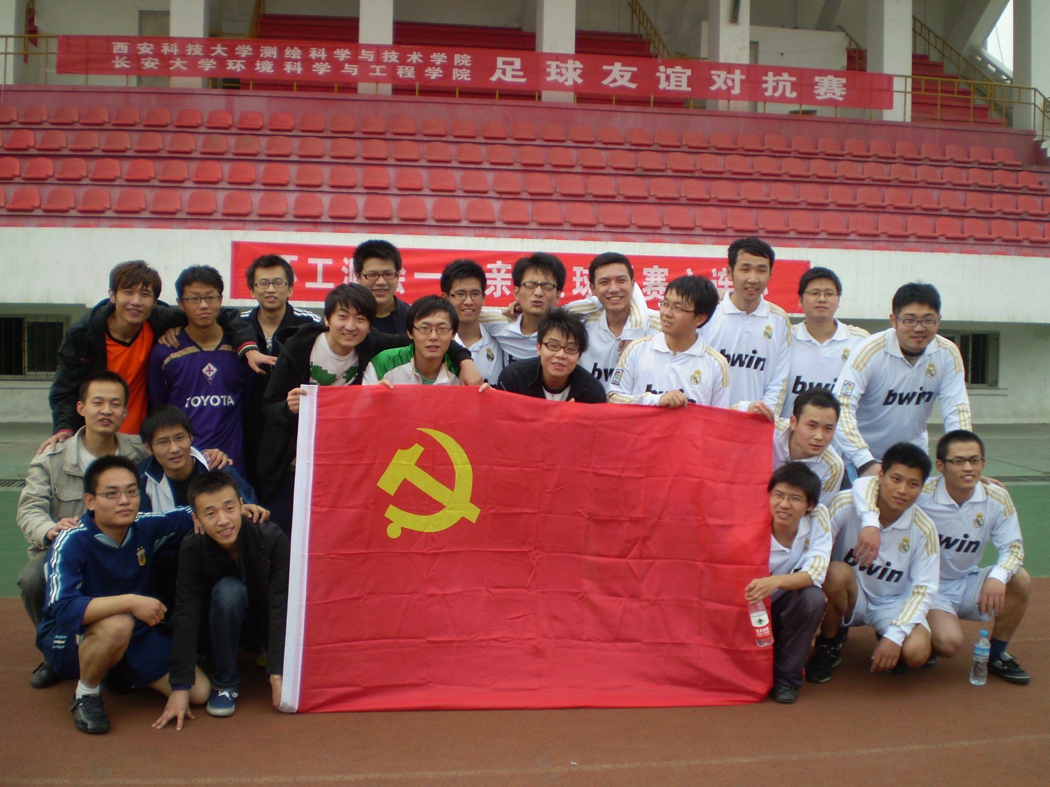 2010年10月26日下午14:30在本部校区体育场,我院2011级研究生党支部与西安科技大学测绘技术与工程学院2011级研究生党支部举行了以“促进交流、相互学习”为主题的足球友谊赛,最终我院以0:1惜败。