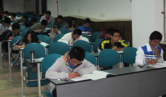 电控学院2011级四百多名新生按照学号整齐有序入座。测试在安静、严肃的氛围中开始,彩虹驿站的工作人员说明了填写制度及填涂规范。全场参试者认真审题,谨慎作答。其间,张翔老师巡查试场秩序,并高度评价本次测试的井然有序。在同学们的认真作答中,一个小时不知不觉过去,在工作人员宣布测试结束后,同学们有序离开试场,工作人员对答题卡进行了收取。