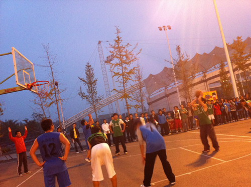2011年11月1日17:30,长安大学"迎新杯”篮球赛小组赛在东区篮球场正式拉开战幕。我院与政治学院进行了第一场对决。在我院团委学生会的组织下,赛场上演绎了一场别开生面的篮球比赛。