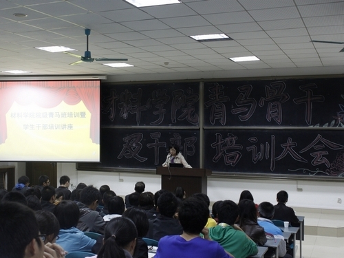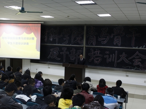 为了提高青马骨干和学生干部的认识,进一步促进我院学生工作良好有序开展,11月2日晚,我院在图书馆1201教室隆重举行了“材料学院青马骨干暨学生干部培训大会”。参加大会的有我院党委书记王耀文老师、团委书记何红娟老师、09级辅导员尚秀琳老师、10级辅导员冯川川老师、11级辅导员刘珺老师以及各院级组织主要成员、青马班全体成员和各班班委。大会由何红娟老师主持。
