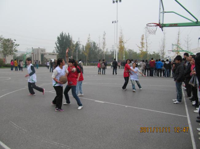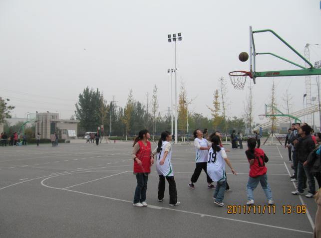 11月11日中午,阳光体育篮球联赛季军争夺战在东区篮球场顺利举行。机械学院女子篮球队与环工学院女篮进行较量。