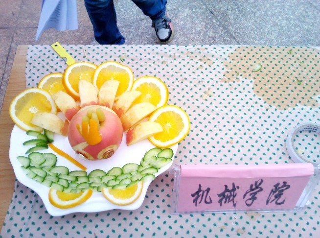 11月12日上午,长安大学第四届“饮食文化节”水果拼盘大赛在树蕙园广场如期举行,机械学院积极响应,并派代表队参赛。