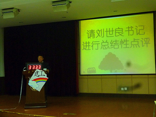 7时整,主持人宣布决赛开始。在抢答器调试完毕以及各参赛队伍自我介绍之后,比赛进入紧张激烈的抢答环节,期间2号和5号参赛队抢答十分活跃,进入第三轮后其他参赛队迎头赶上。比赛期间还加入了观众互动抢答环节,回答正确的观众都获得了奖品。由评委打分的最后一轮答题结束后,建工学院党委副书记刘世良老师对本次比赛做了最后的总结性点评,刘书记在对本次比赛作出肯定的同时也提出了一些建议和期待。