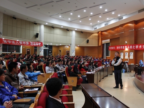 接着,“关爱成长”教育机构的马阳老师从“拓展词汇量”、“勤加练习”、“自信自然”三方面向同学们讲述了口语练习的方法。马阳老师的演讲轻松幽默,充分调动了大家的积极性,活跃了现场气氛,使得互动交流轻松自然。