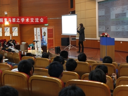 为了使青马活动更好地服务我院同学,同时扩大我院青马班在全校范围内的影响。11月16日晚,我院学生会组织了一次青马学术交流会。本次交流会特别邀请了“关爱成长”教育服务机构为我院同学讲解科学实用的英语学习方法以及留学方面的信息。“关爱成长”教育机构董事长严俊江及其优秀工作者出席了本次会议,我院青马班所有成员聆听了讲座并进行了互动交流。