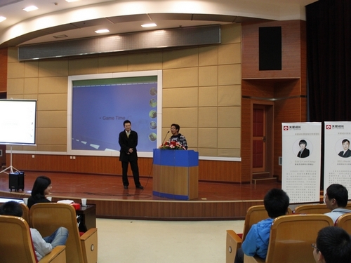 首先,“关爱成长”教育机构的袁一镕老师为同学们讲解了英语学习方面的一些技巧。她以“高度优化时间,做个考试达人”为主题,向大家详细地介绍了大学里可能会面临的一些英语考试以及如何应对这些考试的方法。她根据自己多年的学习和研究经验,给同学们提出了诸多良好的建议,使大家受益匪浅。