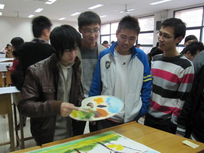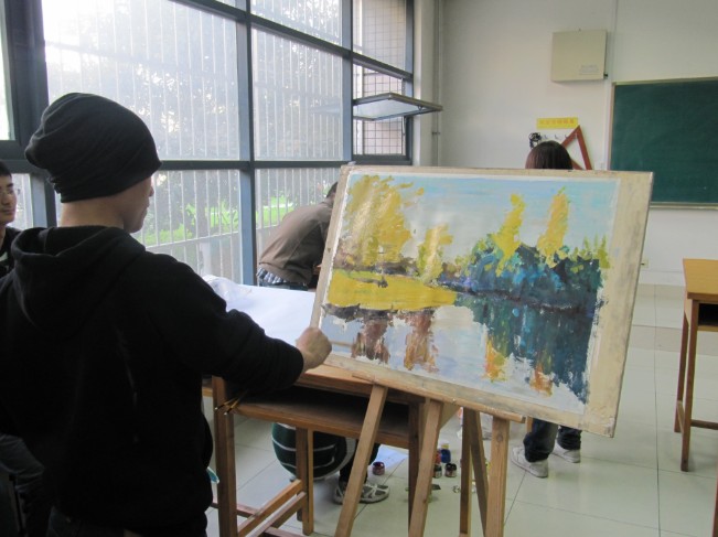 8:30,先由主持人宣读比赛要求和评分细则。比赛为接力赛,参赛队员依次上场接力作画,单人作画时间不超过60分钟,且作品必须由绘画和书法组成。9:00,比赛正式开始。在悠扬的轻音乐中,选手们都挥毫泼墨,将自己心中最美的景象记录下来:或工笔细描,或走笔写意,或赋诗以赞,或弄词以扬。你接过我的画笔以描修远湖之曼妙,我接着他的狼毫以书逸夫楼之恢弘。每位队员都在用心感受长大,用笔勾勒长大,用情记录长大。比赛期间,各院学生会主席也亲临比赛现场参观交流。他们用心观看了选手的创作过程,并对选手们的出色表现发出了由衷的赞赏。