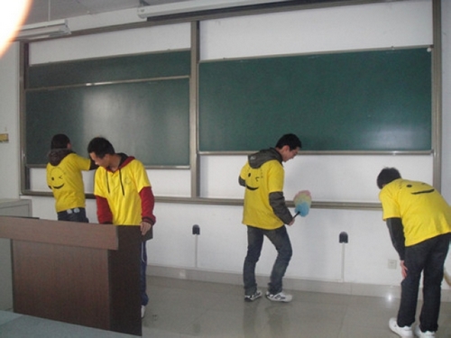 本次活动以教室、自行车停车处、体育场及水房为活动的主要场地。下午13点整,我院大志团全体成员及部分志愿者在八号楼与九号楼之间的空地集合,分配并安排了大家的工作任务。随后,大家按照先前分配好的活动小组分别到指定地点打扫卫生。寒风并不能冷却志愿者服务大众的热情,通过大家的共同努力,最终将教室、体育场、水房等处的灰尘及污物清理干净,将停车场的自行车摆放整齐,还校园一片整洁。