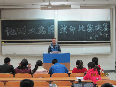 11月28日晚,地测学院大志团演讲决赛在修远1105举行。本次决赛的评委有地测学院大志团主席胡建、副主席胡慧娟、团支部书记刘景奎及各部门部长,刘仁义担任本次决赛的主持人。