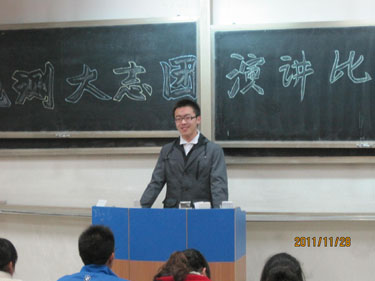 首先,由主持人介绍评委,宣布决赛正式开始。然后对参赛选手及其演讲主题逐一介绍,令观众队参赛选手有所了解。随后,由贾一铭、王栋、满烁等10名选手进行演讲。贾一铭同学细腻的文笔,诠释着“友爱”这一话题;肖兆兵同学借自己最好的两位朋友的事例,讲解着他心中的友谊,抒发着他的真情;满烁同学信心百倍,诙谐幽默的演讲赢得在座观众的认可……所有选手都不约而同的提到了“团结友爱,互助进步”这一宗旨,他们的真情流露,让现场所有人都对这八个字有了更为深刻的认识。