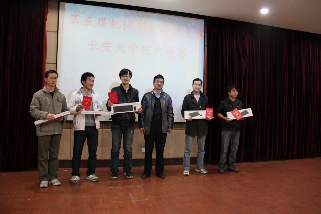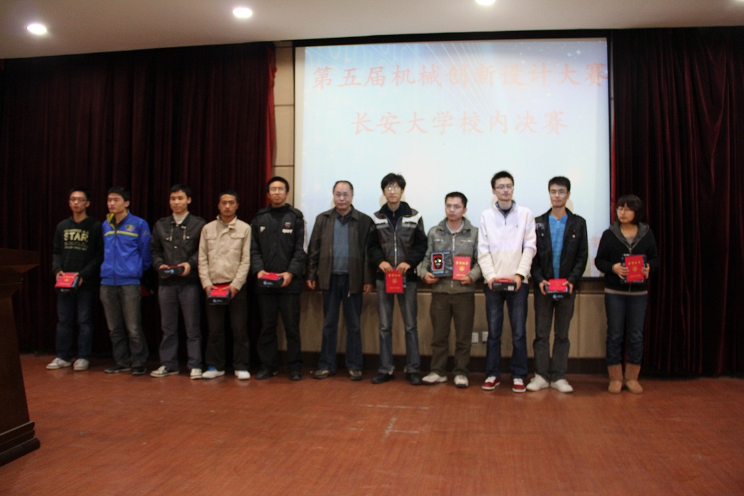 2011年12月3日上午,长安大学第五届机械创新设计大赛评审会在朝晖大学生活动中心多功能厅隆重举行。本次会议由机械科协承办,机械科协干事王琪主持。出席本次会议的嘉宾有工程机械学院副院长宋绪丁、机械系主任张伟社、运用系主任陈新轩、机电系教师魏立基、团委书记朱武威、11级辅导员薛少青。