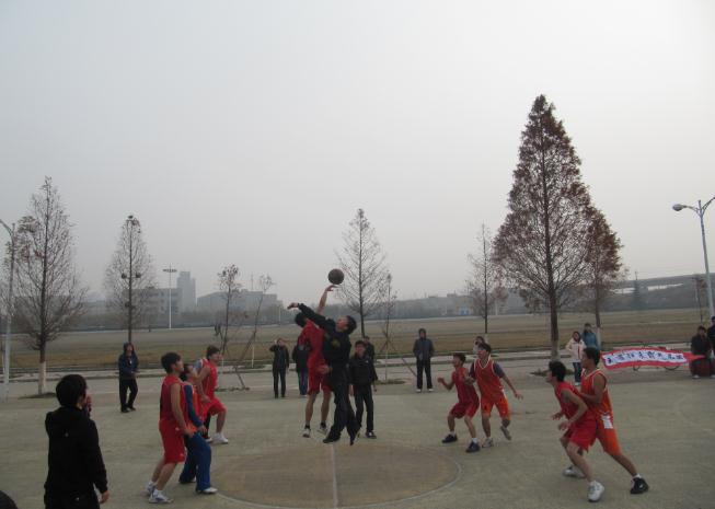 10:00,比赛正式开始。这场比赛的过程可谓是跌宕起伏。比赛一开始,10级工一就迅速找到了比赛状态,首先取得了比分领先。由于天气寒冷,双方球员在随后的比赛中都手感欠佳。但在上半场比赛的中间时段,10级工一似乎渐渐找到了投篮手感,用几记三分球迅速拉开了比分。最大分差竟达到9分之多。就当人们以为10级工一将带着巨大进入下半场时,10级制四在上半场最后阶段开始爆发,打出了一波小高潮,迅速将比分追回。在上半场结束时不可思议的将比反超。下半场易边再战,双方都打出了自己的战术,良好的执行了赛前的战术意图。所以时常能够看到场上球员打出流畅的配合,双方球员你来我往,比分也一直紧紧咬住。到了比赛最后时刻,由于体力下降,10级工一的投篮命中率开始下降。10级制四迅速抓准机会,在比赛还剩下2分钟时取得了5分的领先优势。10级工一开始采用犯规战术,趁机把比分拉到只有三分。但是由于主力球员被罚下,篮板球始终保护不住,进攻十分乏力,没能上演翻盘好戏。最终10级制四顶住了压力,以微弱优势战胜了10级工一。