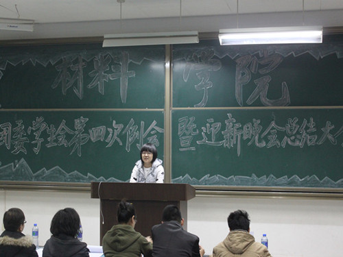 12月9日19时,我院团委学生会第四次例会暨迎新晚会总结大会在明远3101教室隆重举行。我院团委书记何红娟老师,09级辅导员尚秀琳老师,10级辅导员冯川川老师,11级辅导员刘珺老师以及我院团委学生会全体成员参加了此次会议。