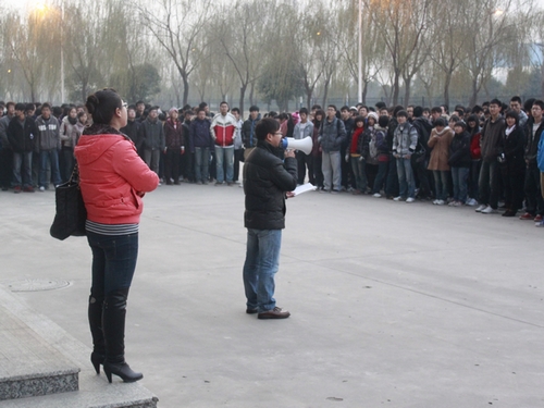 为了动员我院同学做好期末考试的复习准备,同时进行考风考纪教育,12月18日晚,我院在图书馆后召开大一至大三全体学生集会。我院党委副书记高雁北老师、党委副书记闫秀萍老师、09级辅导员尚秀琳老师、10级辅导员冯川川老师以及11级辅导员刘珺老师参加了本次活动。