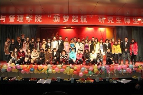 2011年12月29日晚7点,经济与管理学院“新梦起航”研究生师生联欢晚会在校本部东院雁博园多功能厅隆重举行。出席本次晚会嘉宾有长安大学社科处处长杨琦,党校常务副校长牛跃平,就业与发展服务中心主任刘家乡,院党委书记胡予欣,党委副书记吴喜梅,副院长张圣忠。研究生导师代表,学生工作办公室的老师及全体研究生参加了本次晚会。