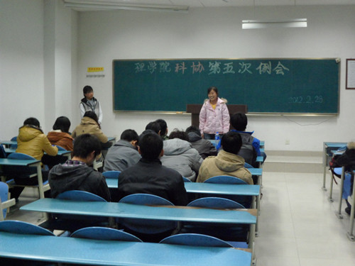 2月28日晚,理学院科技创新与创业协会在明远3409教室成功召开本学期第一次全体例会,理学院科协主席王敏以及科协全体成员参加本次会议,会议由秘书部部长郎亮明主持。