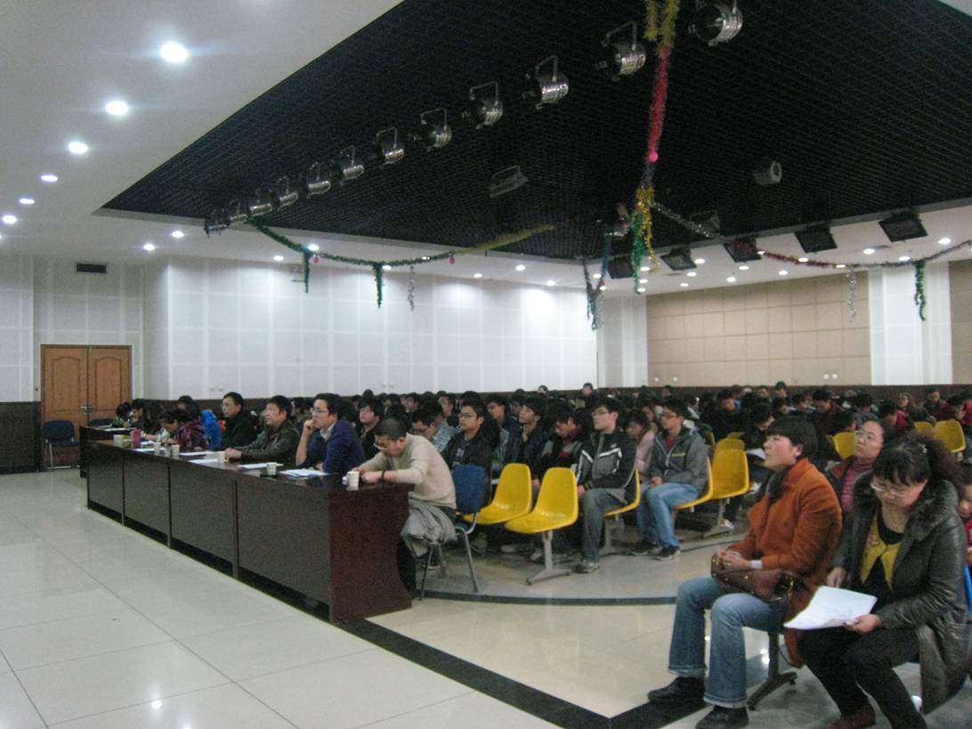 2012年3月4日15:00,环工学院在朝晖大学生活动中心三楼多功能厅成功召开了全体学生干部大会。学院党委书记袁卫宁,党委副书记高建昌、马明芳,副院长钱会,教学秘书车红荣,学办主任王妍,团委书记田亚妮以及渭水校区全体辅导员出席了本次会议,团委学生会、科协、彩虹驿站的主要干部以及2009、2010、2011级兼职辅导员、各班班长、团支书参加了本次大会。本次大会由党委副书记马明芳担任主持。