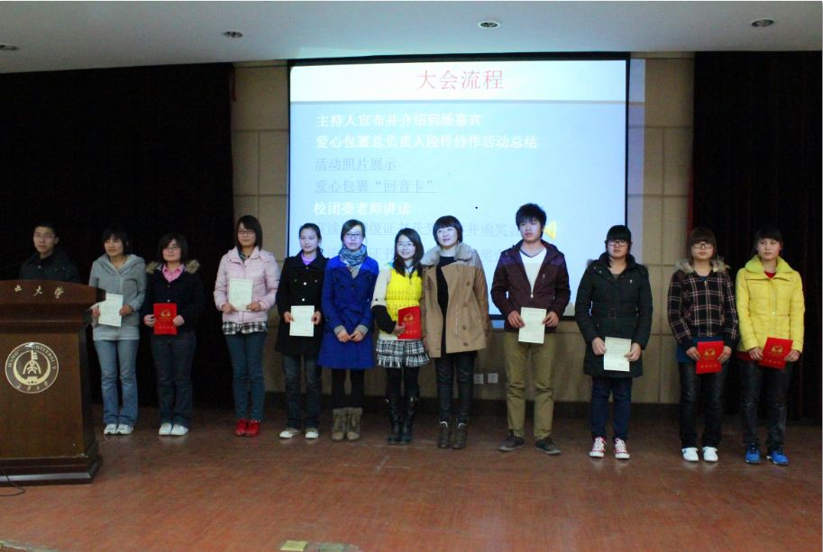 本次大会标志着爱心包裹项目的圆满落幕。会上表彰了一大批表现优秀的志愿者,并为他们颁发了国家级证书和校级证书,这是对他们志愿者工作的充分肯定,更是对“奉献、友爱、互助、进步”的志愿者精神的传承和发扬。同时,此次大会也勉励全体志愿者们要在志奉献中有所作为,在付出中提升境界,在实践中传播志愿者精神。希望所有的志愿者们能够在今后为我校志愿者工作的开展贡献更大的力量,在志愿服务事业上风雨兼行。