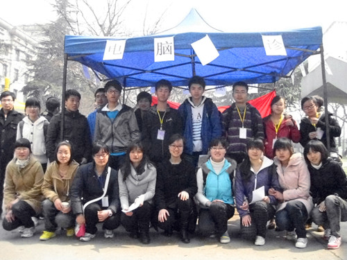 2012年3月11日上午八点,信息学院青年志愿者协会全体成员以及大学生科技与创新协会部分成员早早到达了长安大学雁塔校区,搭建起帐篷,进行为期一天的电脑义诊活动。