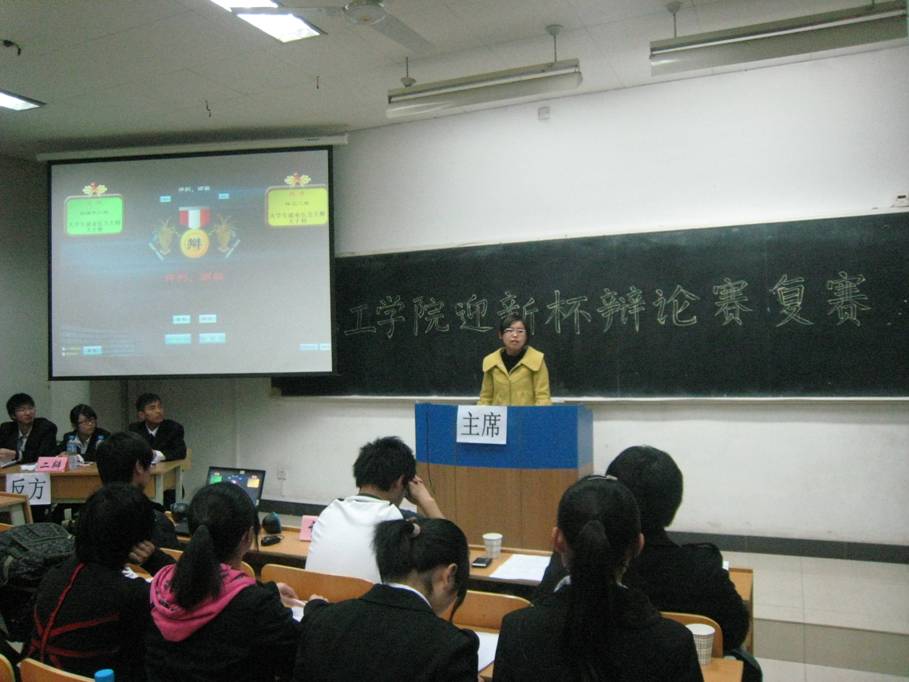 2012年3月20日19:00,环工学院为期两天的“迎新杯辩论赛”复赛落下帷幕,环工学院学生会主席团成员担任了复赛的评委。