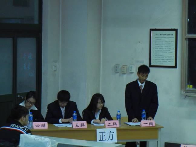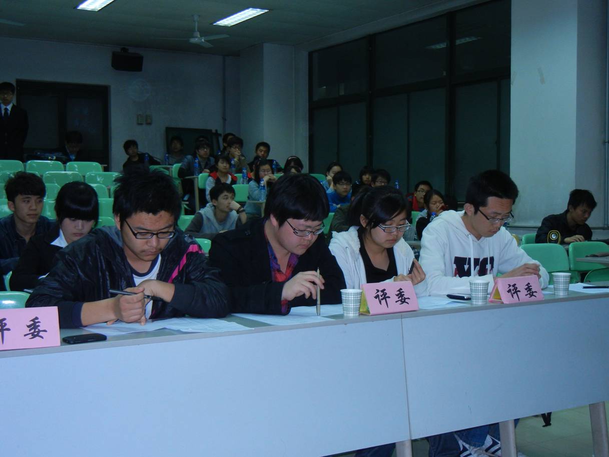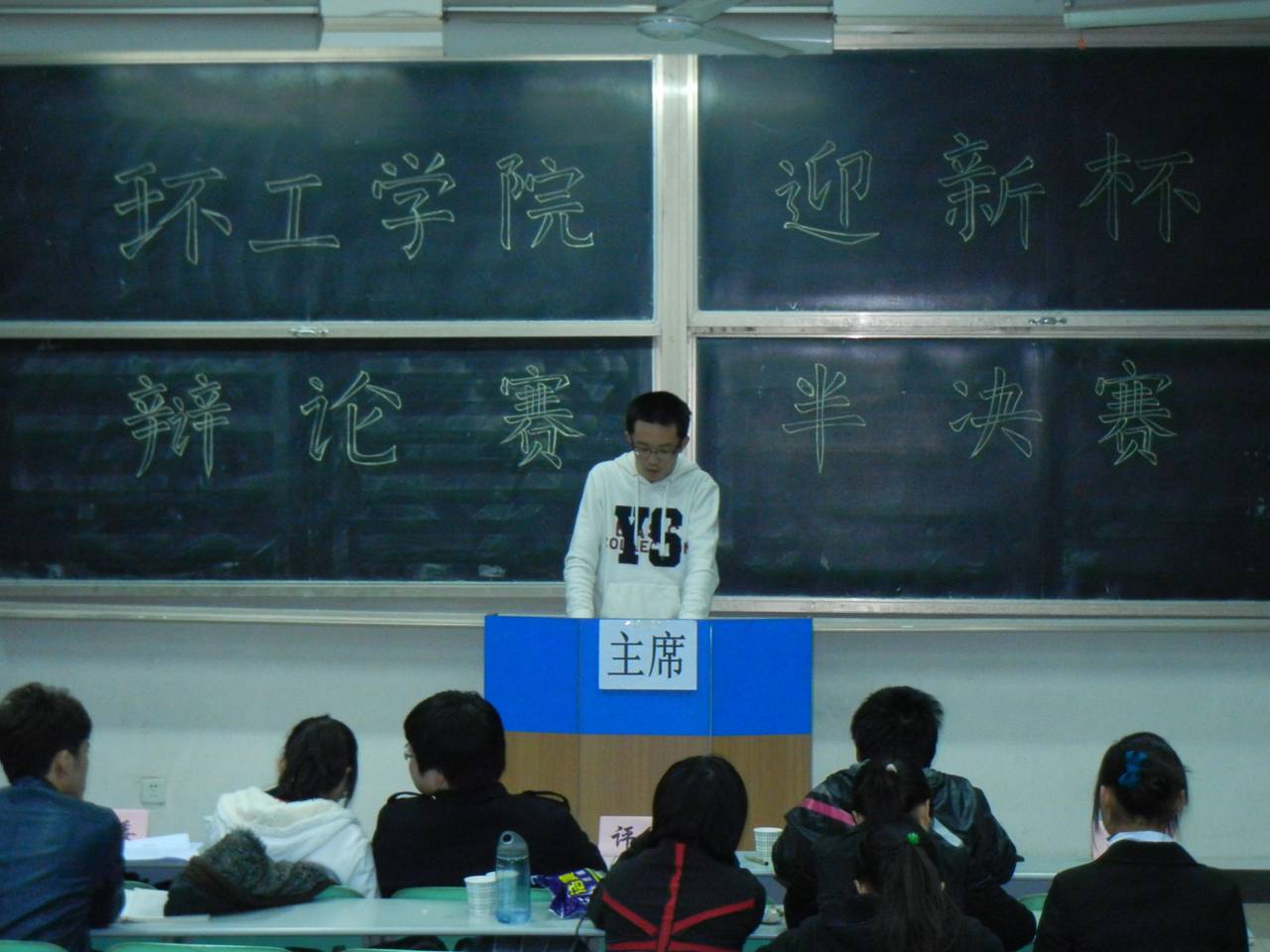 2012年3月26日19:00,环工学院2012年“迎新杯辩论赛”半决赛在修远2101教室举行。本次半决赛的嘉宾评委有环工学院学生会主席王瑶,副主席王矗,秘书长李诗浩,团总支贾璐维。