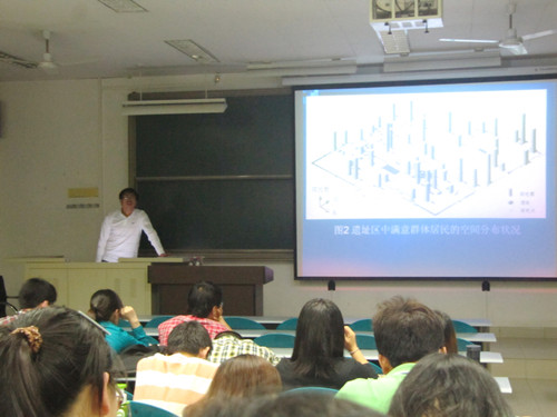陈老师首先讲述了大遗址的概念、特性、分类与保护规划等相关知识,尤其在西安这样的古都,大遗址的保护与区域发展显得尤为重要。陈稳亮博士又和在座的同学们分享了自己在2005年亲自做的关于遗址区内外居民生活情况的调研,调研的范围包括居民对经济收入、住房条件、交通条件等方面的满意度,调查结果显示居民的满意度和其保护态度与行为的彼此关联,从一定程度上反映了遗址保护与区域发展这一矛盾的相互作用。显然,大遗址保护总体规划是不可或缺的。陈稳亮博士接着讲述了大遗址保护中规划的作用与意义。并详细回答了在座同学提出的问题。