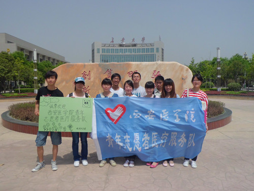 2012年4月27日,地测学院阳光志愿服务团与西安医学院志愿者总队在长安大学联合举办“情系五一,爱满校园”关爱校内教职工活动。