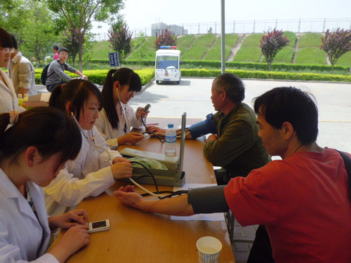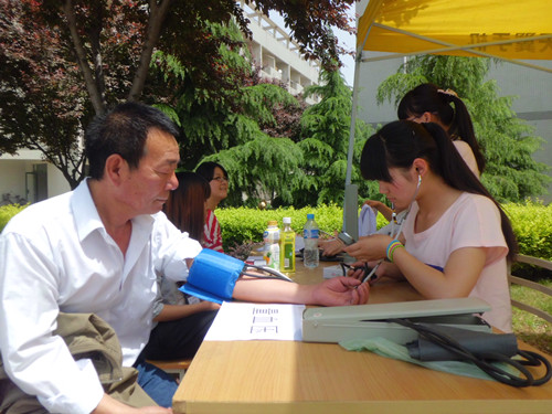 上午8点,由机动组人员将帐篷、横幅、宣传画板等活动用品搬至活动地点,并开始布置。上午10点,西安医学院志愿者按时到达,来到服务点,并整理检查体检仪器。10点半,宣传组人员进行活动宣传,并收集祝福语,与此同时,由医学院的志愿者组织后勤工作人员进行体检及统计体检结果,并对他们提出合理建议。随后,请参与体检的阿姨叔叔在横幅上签字。下午3点半,活动结束,全体人员清扫活动现场,并送西安医学院志愿者离开。