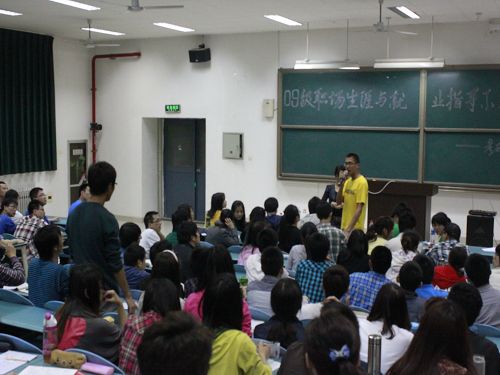 为积极响应学校关于做好学生职业生涯规划与就业指导有关文件的号召,同时为09级同学解决考研与就业方面的疑惑,以使大家能够更好地明确目标、积极地做好未来整体规划,5月3日晚,我院09级于明远3201教室成功举行职场生涯与就业指导系列活动之考研经验交流会。我院09级辅导员尚秀琳老师出席了本次交流会,同时会议还邀请到了在读研究生山宏宇同学和戴鹏飞同学以及08级保研与考研学生代表田佳佳、赵阔、曾星华、王嘉平、迟晓晨、易卉六位同学。交流会由09级学生兼职辅导员傅学宽同学组织开展,并由09级党支部负责人任梦同学主持。