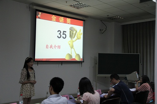 比赛的主持人由八位随机抽取的参赛选手担任,直接给选手们提供了展现主持风采的机会。比赛分为四个环节:自我介绍、绕舌秀、妙语连珠和评委点评。比赛规则为每个环节、每位选手在PPT屏幕上选择一题,然后在给定时间内作答。自我介绍环节中,选手们富有创意与特点的介绍给评委留下深刻印象。接下来的绕舌秀则充分地展现出了选手们的普通话水平,一句句颇有难度的绕舌令在选手的口中字字流畅、字调饱满,快节奏的朗读,清晰的发音引来台下一片掌声。最精彩的要数妙语连珠环节,要求选手们在两分钟时间内把给定的词语连成一段话,选手们有的将其描述成现实生活、有的编出童话故事、有的作抒情告白,充分展现了各自丰富的想象力、奇特创造力和敏捷的应对力。在每个选手展示过后,评委们都给予中肯的评价,指出优点、提出不足、给出建议,不时还给选手提出问题,考验临场应变能力。