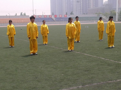 精彩的开幕式结束后,便开始了个人赛的比拼。各个学院的选手依次登场开始了太极拳的表演。我院参赛选手王宁表演的是“二十四式简化太极拳”。在轻柔舒缓的音乐中,她手、眼、身、法、步全身配合协调,动作自然流畅,目光柔和却给人一种不怒自威的感觉,每一个简单的动作也会饱满而富有内涵,在柔和与平淡中凛然不可侵犯。在喧嚣的体育场上,却让我们得以在宁静平和的气氛中慢慢体味中国传统文化的精髓。个人项目结束后,便开始了10人集体项目的比拼。集体项目讲求配合协调一致,动作连贯流畅。最终,我院获得总成绩第四名。