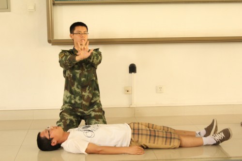 此次活动针对大学生安全教育问题,旨在提高大学生自救、急救的能力。首先,第一位国防生详细讲解心脏复苏术和人工呼吸的具体方法。在同学的配合下,国防生现场示范了安全急救措施的方法。接着,第二位国防生详细教授了火灾、爆炸中烫伤,止血包扎,骨折等的应急措施。国防生通俗易懂、活泼生动的讲解博得同学们阵阵掌声。最后,汤颖颖老师对两位国防生表示感谢并对此次讲座做了总结。