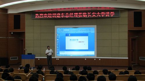 6月5日下午3:00,上海云石管理咨询有限公司首席咨询师、上海最大的建筑行业软件公司——上海兴安得力软件有限公司总经理胡建东在图书馆西侧报告厅为我院学生作了题为《跨出象牙塔——准备好了吗》的主题报告会,我院副院长吴涛副教授,张静晓副教授,09级辅导员殷佳老师及我院各年级学生代表参加了本次报告会。